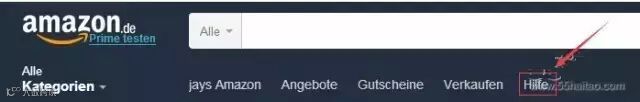 a进入亚马逊主页,点击选择左边的‘hilfe’