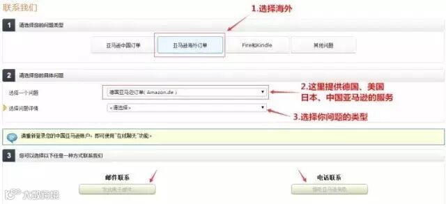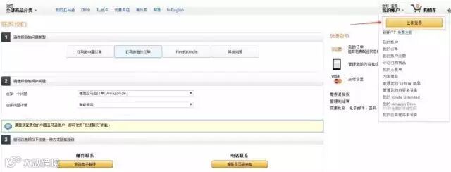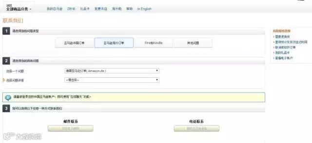 a.无需在亚马逊主页选择跳转,可直接进入链接:https://www.amazon.cn/gp/help/contact-us/ref=cbs_banner_de_de?initialIssue=cos-