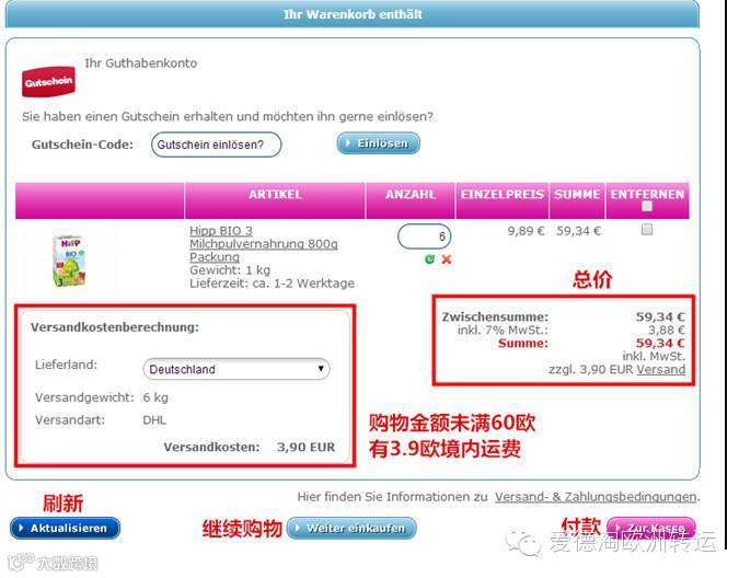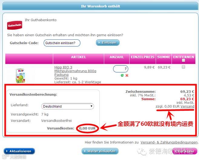 温馨提示:Babyneo母婴用品店购物满60欧元免德国境内运费。