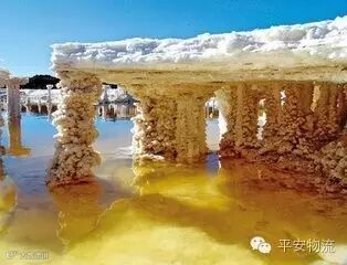 它四面被山包围,地势低洼,丰富的地下水和地表水的及时补给,最后形成了固液并存的盐湖。
