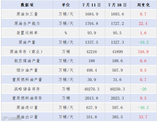 (2)【能源生产】6月份,规上工业原油产量1820万吨,同比增长1.4%,增速比5月份放缓0.4个百分点;日均产量60.7万吨;1—6月份,规上工业原油产量10848万吨,同比增长1.3%。