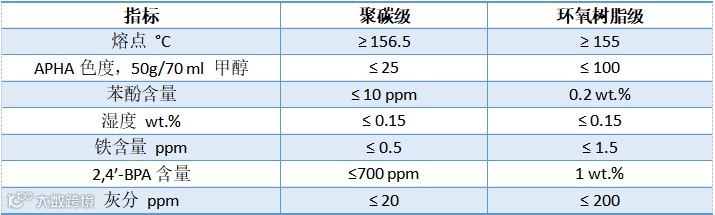 表2 聚碳级双酚A和环氧树脂级双酚A质量参数对比