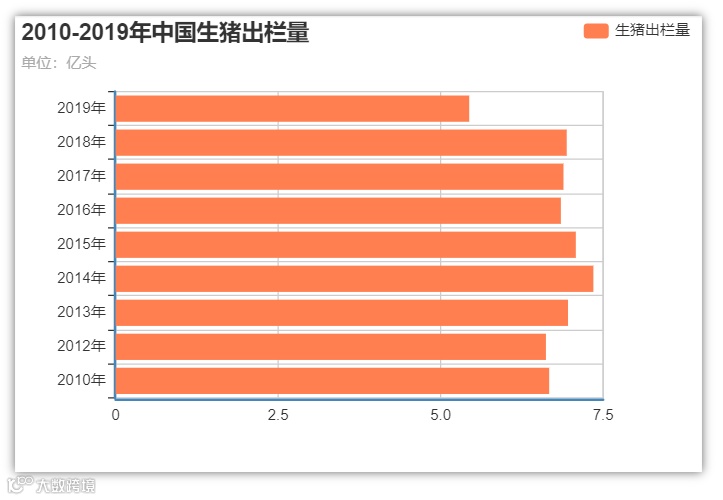 受去年“非洲猪瘟”影响,我国生猪出栏量和猪肉产量均同比下降,生猪出栏量为5.44亿头,猪肉产量为4255万吨。