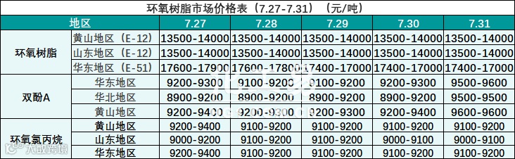 环氧树脂报价(7.27-7.31)