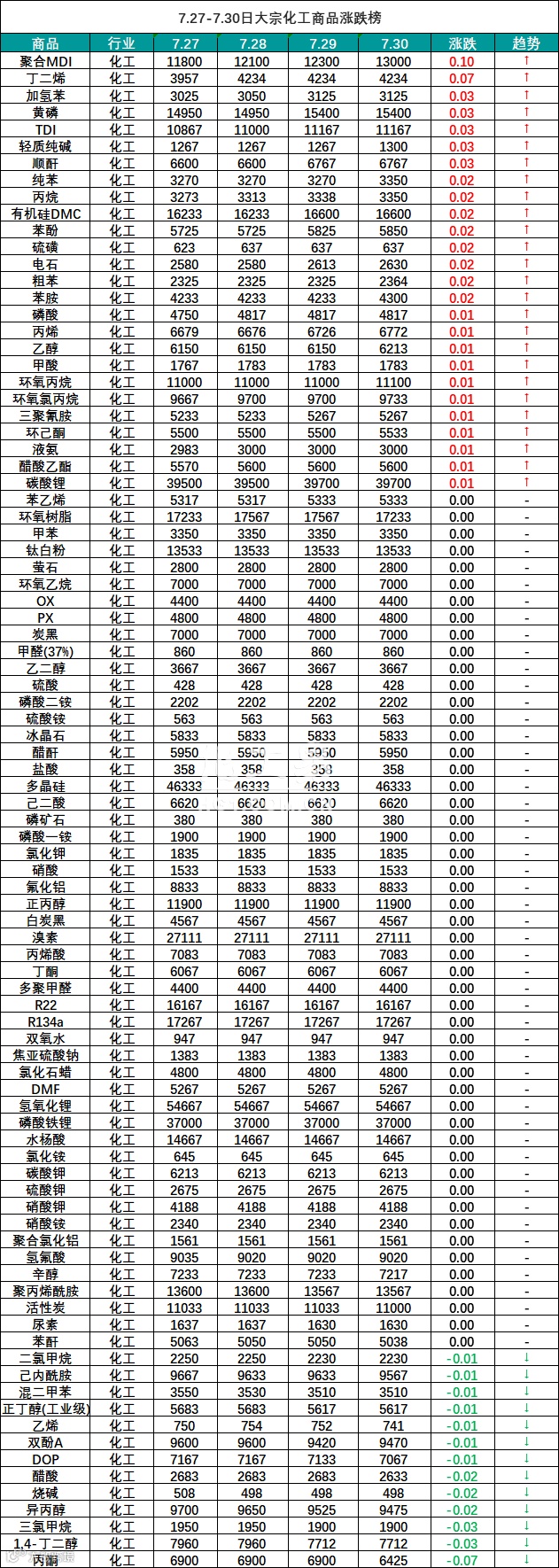 大宗商品报价(7.27-7.30)