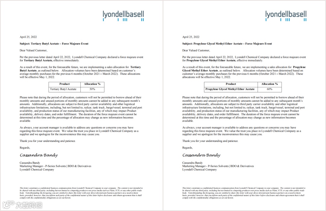 (2021年10月-2022年3月)的平均月购买量确定的,该计划将于 2022 年 5 月 1 日起生效。该消息预示着上述原料将按照客户此前采购量来限量供应。
