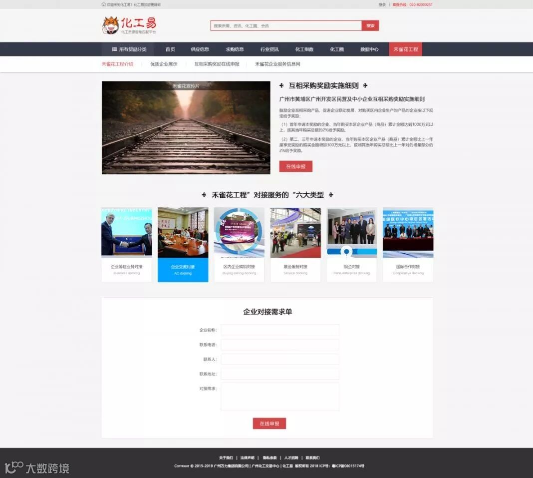 顺应实施“一带一路”倡议、粤港澳大湾区建设作为贸促工作的重大历史机遇,广州化工交易中心有限公司积极响应,主动作为,坚持把本单位摆出去。现场,广化交易总经理闫利表示公司将借助其自有的化工资源智能匹配平台——化工易,助力完善“禾雀花”工程信息网的建设,补齐线上交易短板,帮助企业破解“市场的冰山”、“融资的高山”和“转型的火山”,共同推动黄埔区促贸工作上新水平、新台阶。