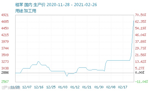 粗苯:从2月1日的2976.25元/吨,上涨到4725元/吨↑↑,涨幅高达58.76%!
