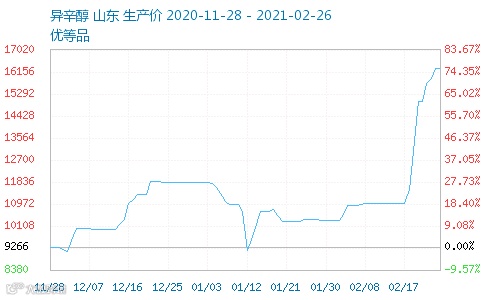 异辛醇:从2月1日的10333.33元/吨,上涨到16300元/吨↑↑,涨幅高达57.74%!