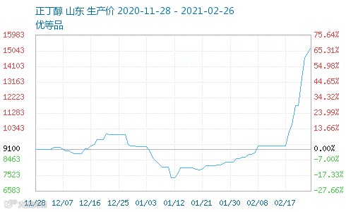 正丁醇:从2月1日的8533.33元/吨,上涨到15200元/吨↑↑,涨幅高达78.13%!
