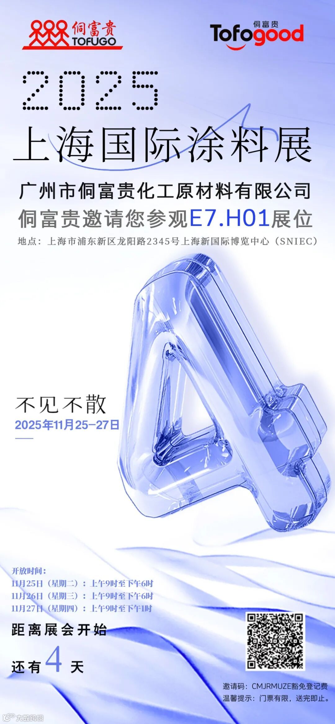我们在E7.H01侗富贵展台期待与您共同探讨涂料行业发展趋势,分享前沿技术成果与应用方案。让我们相聚上海,共同见证科技与应用的深度融合,共创涂料油墨行业的璀璨未来!