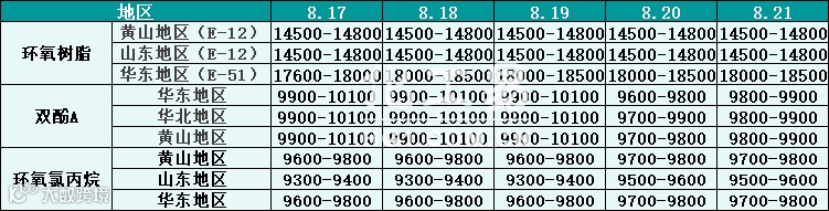 环氧树脂报价(8.17-8.21)