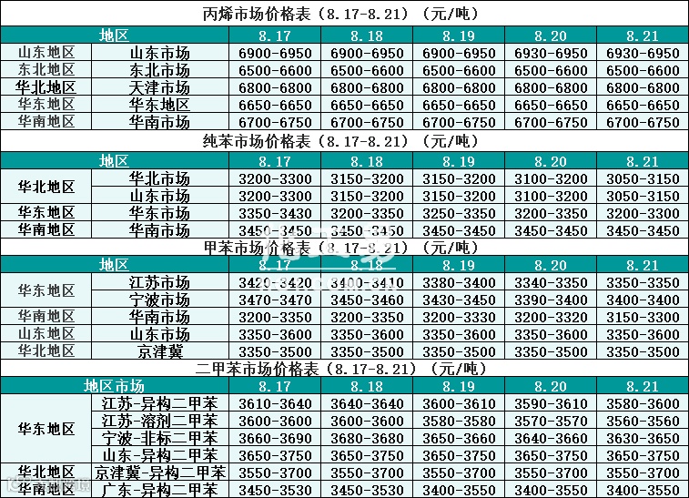 烃类报价(8.17-8.21)