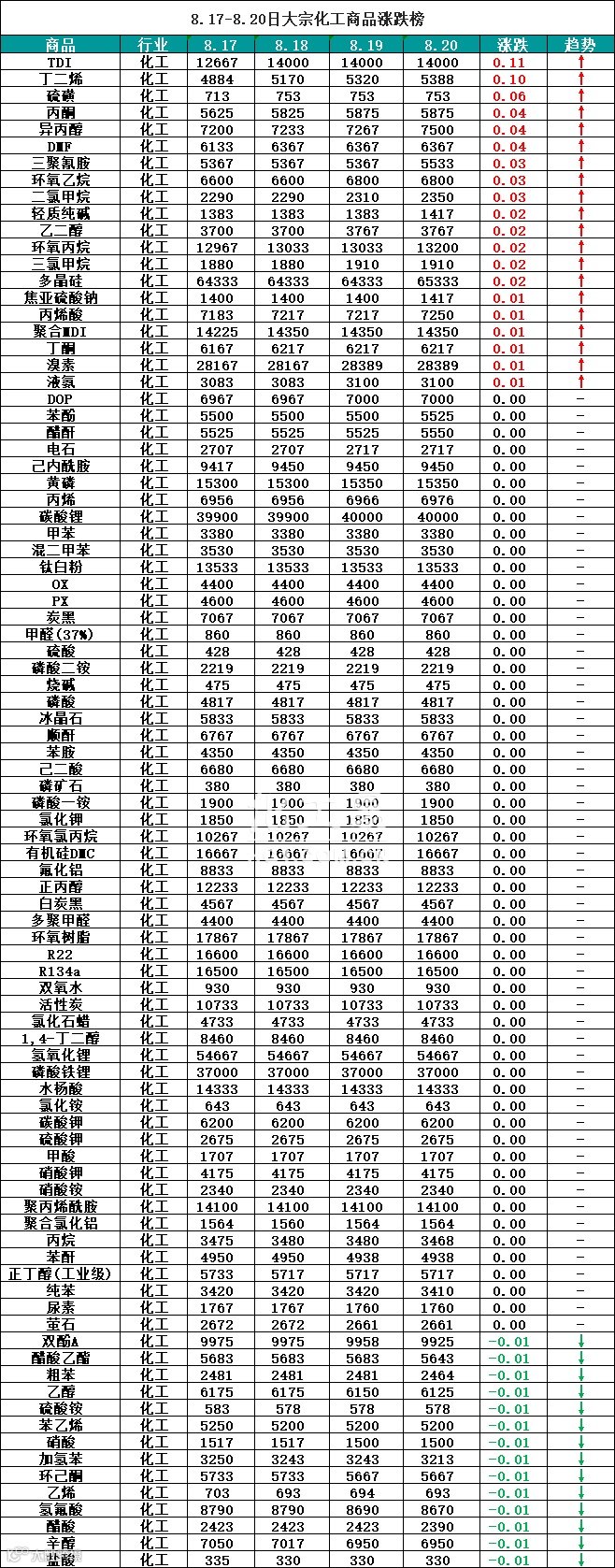 大宗商品报价(8.17-8.20)