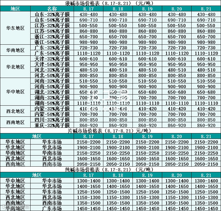 碱类报价(8.17-8.21)