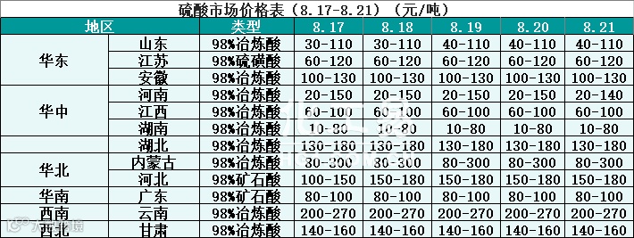 硫酸报价(8.17-8.21)