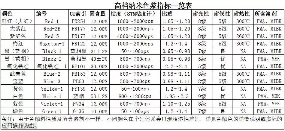 备注:由于各颜料性质及所含溶剂不一样,不同颜色在个别体系可能会出现相溶性差别,详见各颜色的详情说明或实际的应用操作为主。欢迎来电咨询。