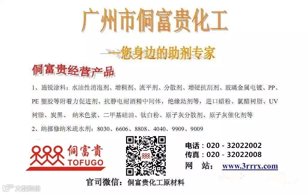 3、再加入分散剂PA30、消泡剂SRE-2006、润湿流平剂SRE-323-50在800-1000转/min速度高速分散10min