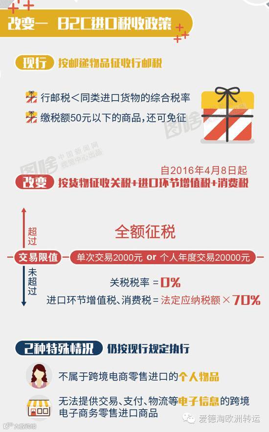 今天小编主要说说跨境B2C,即跨境电子商务零售,也就是直邮进口,是国内的客户下单后,所购买的物品从国外寄回国内,清关之后转国内快递派送。境内消费者跨境网购后,电子订单、支付凭证、电子运单等由企业实时传输给海关,才能进行清关,这就是所说的三单对碰,商品通过海关跨境电子商务专门监管场所入境,按照2016年4月8日跨境电商税收新政进行征税。