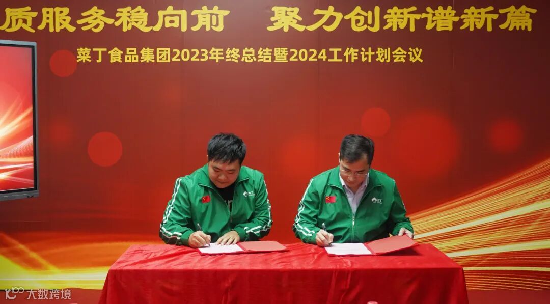 在大家的共同见证下,菜丁控股集团与菜丁食品集团,菜丁食品集团与业务板块、贸易板块分别签订了2024年度目标责任书。