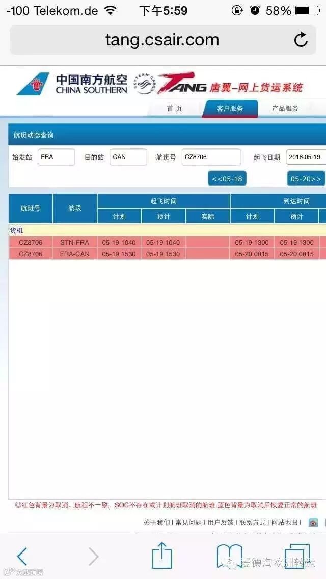 5月13号周五截单的爱马赫快线航班号为CZ8706,起飞时间为19号下午15:30,到达中国时间为北京时间20号早上8:15.官网跟踪链接:tang.csair.com