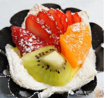 16、上面按照喜欢放些水果。如果有时间和精力,可以再水果上面刷些明胶,这样看起来更漂亮。我这次做的没有刷。其实不刷也蛮漂亮的。