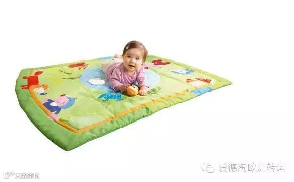 德国名牌HABA出品的这款魔法森林爬爬游戏毯,从出生第一天就可以使用,做工细致,色彩鲜艳,里面有软软的厚实填充料,可以让孩子在上面随便爬行玩耍也不会受伤,同时又可以随时用洗衣机清洗,上面精心设计制作的各种小动物,还附有可以拿下来的绒毛玩具,帮助宝宝锻炼手部的小肌肉和视觉的发育。Haba出品一向是品质保证。原价70欧,现在77折后只要53欧,德国境内免运费