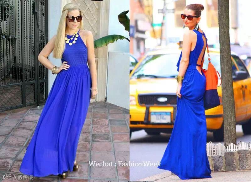 在夏天,连衣裙是潮人们的必备单品,飘逸仙美的连衣裙配上高雅的宝蓝色,穿出夏天的高雅气质范。