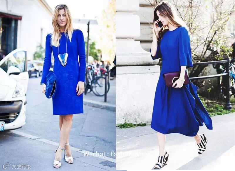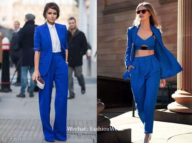 可见宝蓝色正受着越来越多人的宠爱,潮人们全身都有穿上了宝蓝色,虽然可以成为路人瞩目的焦点,但是这种搭配蛮难hold住,慎学~