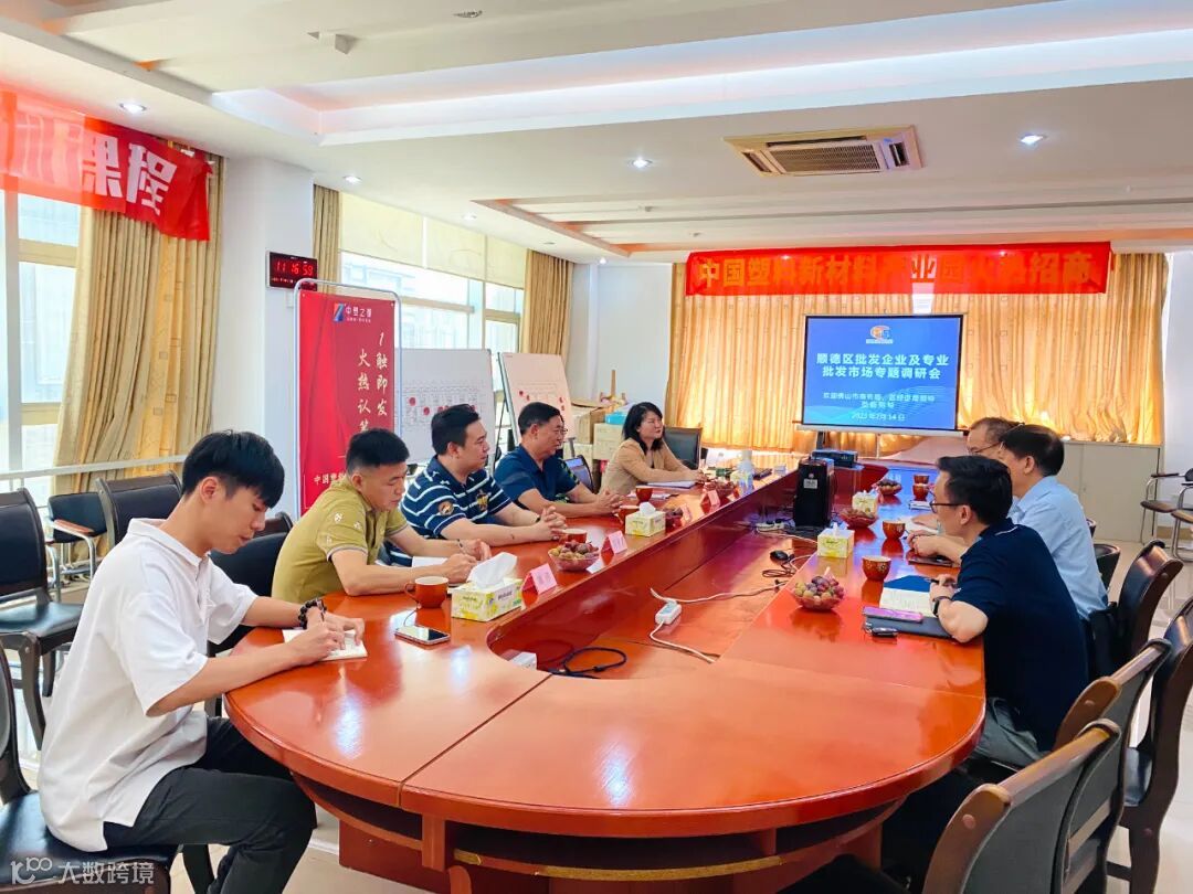 2023年7月14日上午,市商务局、区经促局和镇经发办调研组一行到访乐从塑料协会&中塑之都,就中国塑料新材料产业园园区建设规划和对塑料专业市场经营现状进行调研并详细交流。