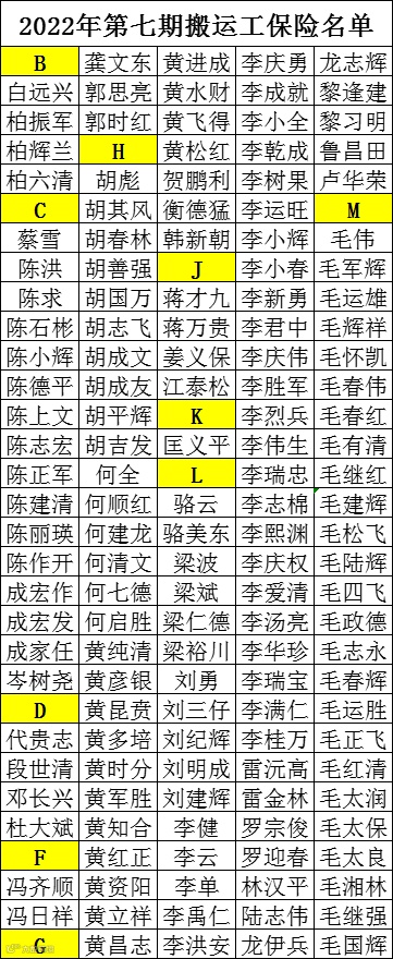 经过工作人员对投保商户、搬运工进行人数统计并收取相应保费后,第七期搬运工保险于2022年11月12日正式生效,到2023年11月11日结束。在该段时间内,投保商户和搬运工都将受到本次搬运工保险的保障,投保名单详见下方。