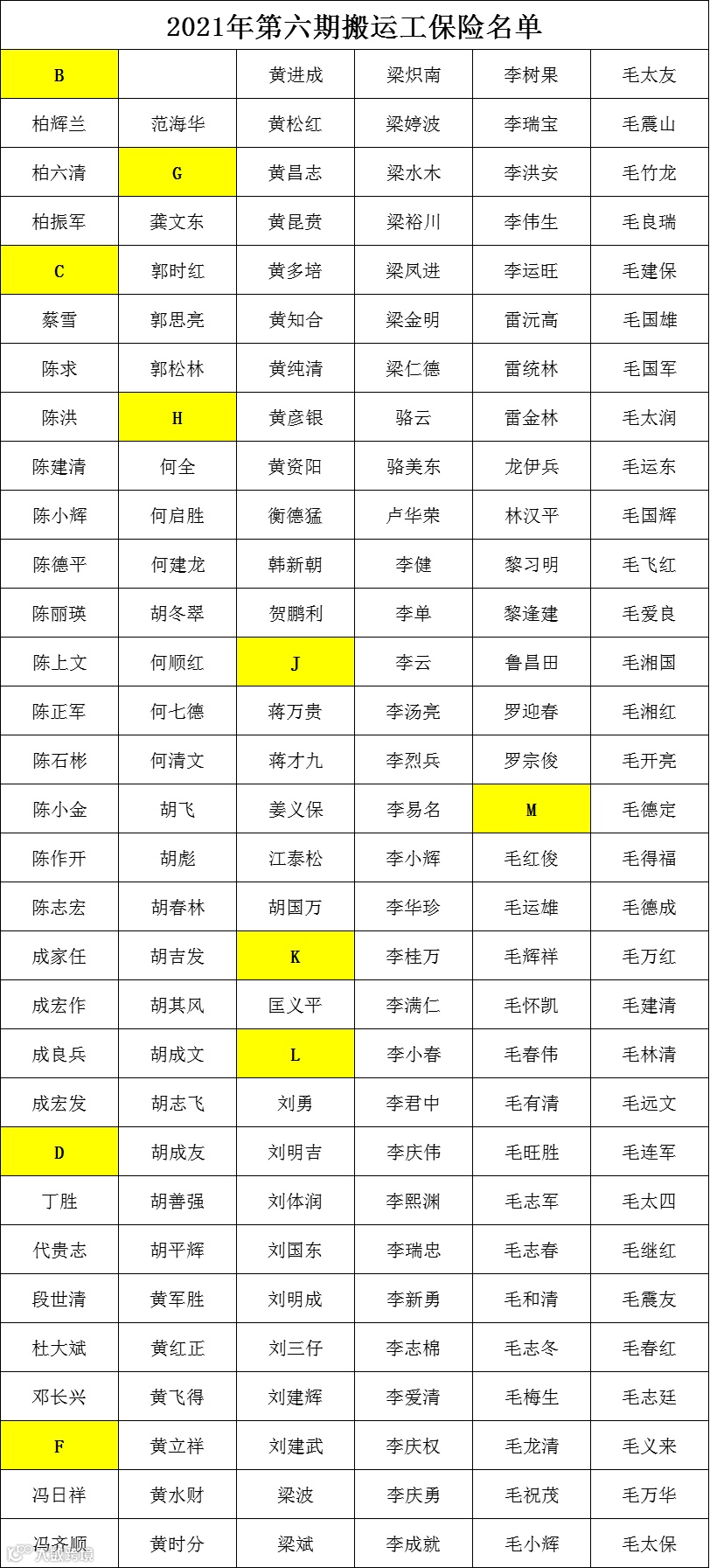 第六期搬运工投保名单如下
