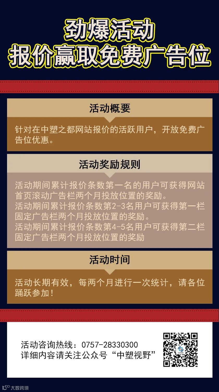 凡是参与我们中塑之都网站报价的活跃用户,都将有机会获得免费的广告位优惠!