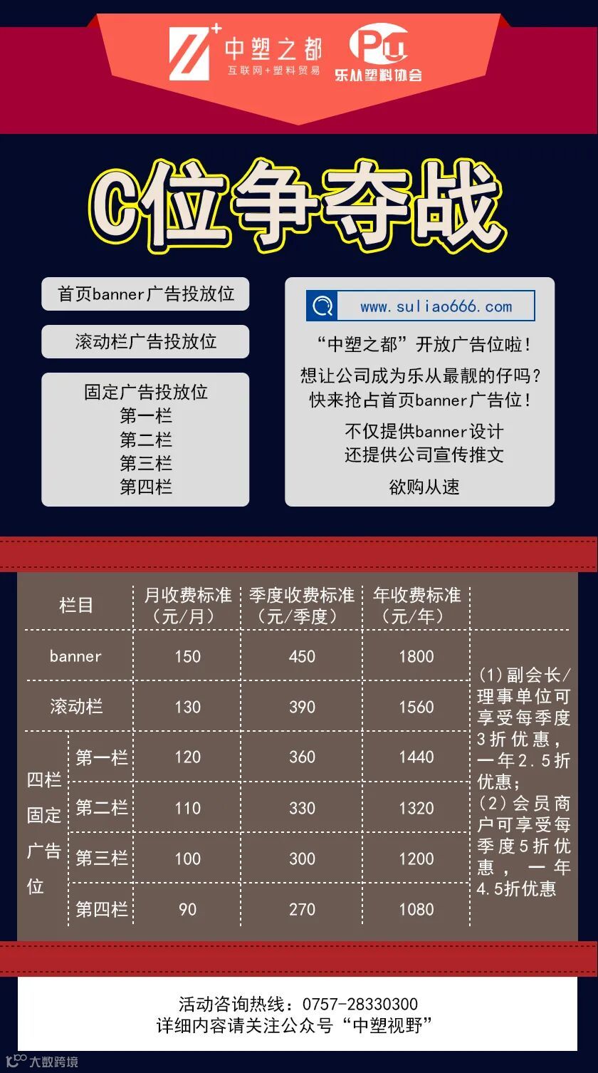 凡是参与我们中塑之都网站报价的活跃用户,都将有机会获得免费的广告位优惠!