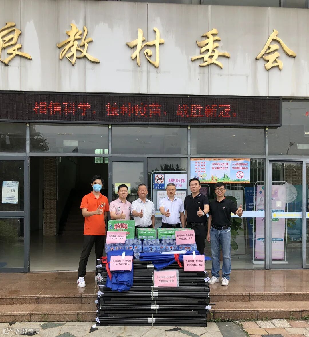 在了解良教村委会核酸检测工作的进程后,为了核酸检测工作更好地开展,同时让医护人员和一众村民能在更舒适的环境下共同完成核酸检测的工作,广东众福汇置业投资有限公司向良教村委会捐赠本次抗疫物资,本次所捐赠的物资中包含了帐篷10顶、矿泉水20箱和八宝粥5箱。希望在践行企业责任同时,通过这份微薄的心意以此感谢医护人员的无私奉献。