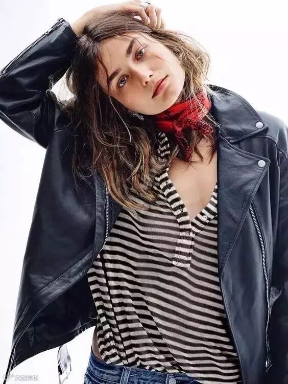 短款的丝巾可以作为choker(项圈)出镜,尤其是颜色单一的基本款服饰,这时候,一条丝巾甚至能起到化腐朽为神奇的作用。