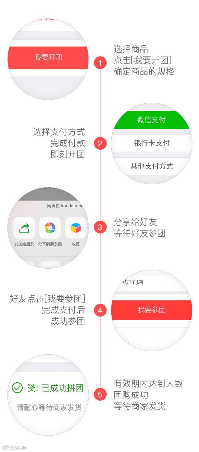 2. 开团有效期限为24小时,有效期内凑足拼团人数即拼团成功;3. 若拼团失败,金额将在24小时内退回付款原账户。