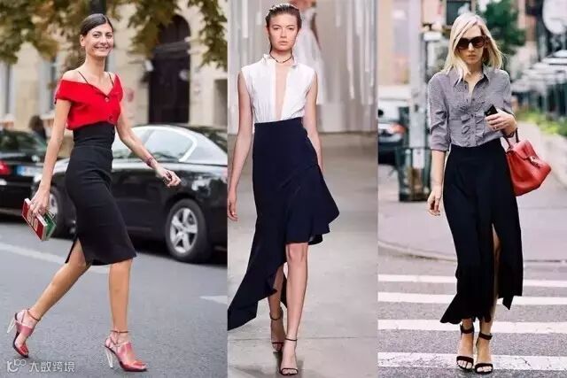 同样是一条黑色半裙,不规则下摆的半身裙则显得更灵动,丝毫没有黑色的压迫感,在修饰腿型方面效果也是立竿见影。