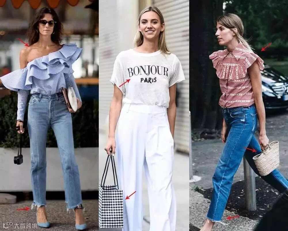 荷叶边的上衣搭配毛边的牛仔裤或直筒裤配一个超级流行的草编包都能配出好看的Look来,甚至简单的T和纸箱包也能撞出时髦感来。细细看来,时髦精的街拍虽然看起来简单,实则暗藏不少“小心机”。