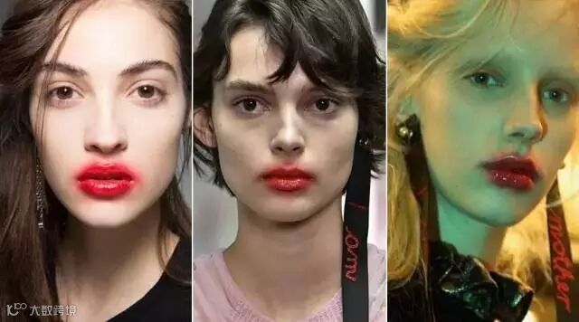 虽然吻唇妆被一票吃瓜群众评价为看不懂时尚,但却赢得了时尚圈化妆师们的喜爱,并且这股“妖风”还有点愈演愈烈的态势。