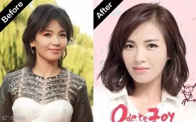 刘涛在《欢乐颂》中的造型是不是大气优雅,这得益于刘海遮住了她最大的面部缺点:颧骨。左图中刘涛侧面,颧骨特别突出,而C形刘海柔和地挡住了她的脸部边缘,缓冲掉强势的颧骨后,整个人变得年轻自信!