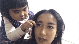 还和小朋友一起化妆,天真有童趣