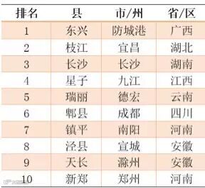 近两年,中西部成为县域电子商务新增点。2015年,在中西部大众电商创业最活跃的10个县排行榜上,位列前三位的是东兴、枝江、长沙(县),第四至第十位依次是星子、瑞丽、郫县、镇平、泾县、天长和新郑。