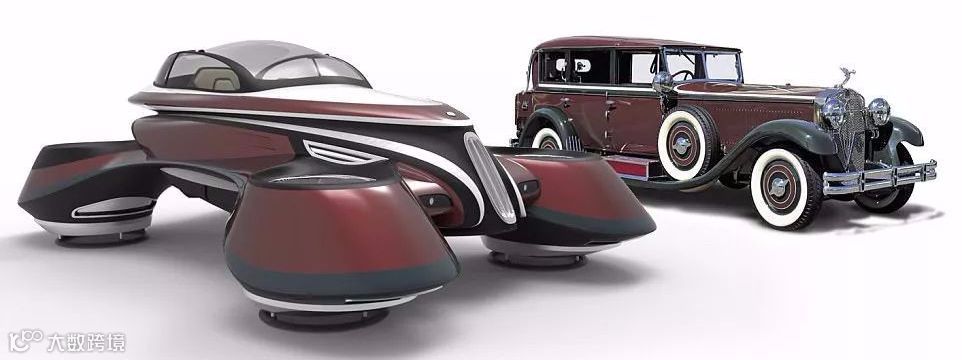 设计工作室将1919年至1924年间生产的豪华跑车Isotta Fraschini Tipo 8与未来汽车技术相结合,设计出一款科幻电影中出现的能够飞行的无人驾驶概念车。