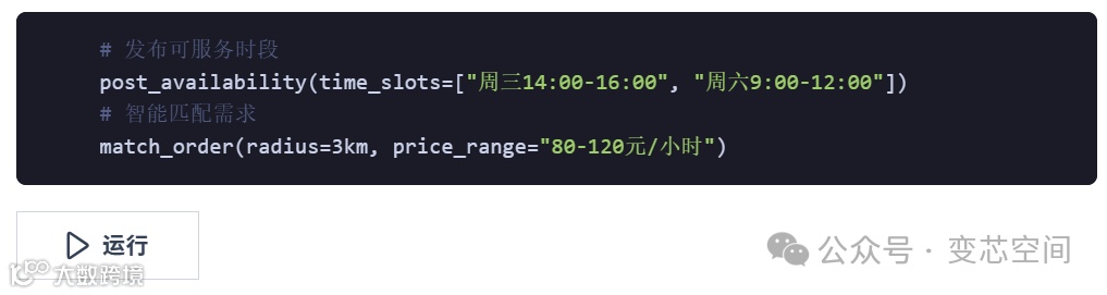 ✓ 动态定价模型:基础服务80元/小时,持证照护者溢价20%,紧急夜间订单加价50%。服务过程AI辅助