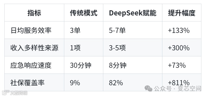 通过DeepSeek系统的需求智能匹配、服务过程数字化、收益生态多元化三重赋能,家庭照护者完成从“个体劳动者”到“社区养老产业节点”的质变。这不仅释放2.4亿家庭照护者的商业价值,更推动形成“政府保底线、市场提质量、技术增效率”的可持续养老新模式。