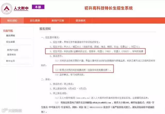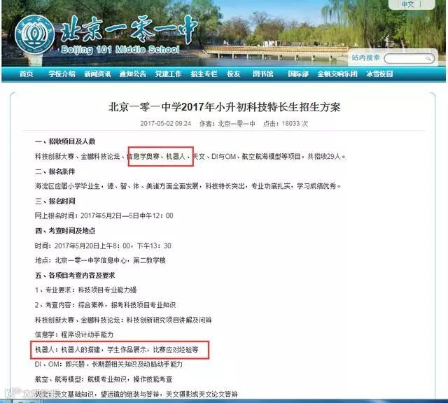 北京一些中学小升初对科技特长生要求: