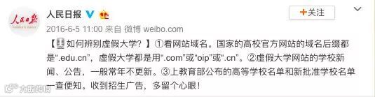 ①看网站域名。国家的高校官方网站的域名后缀是“.edu.cn”,虚假大学是用“.com”或“oip”或“.cn”;