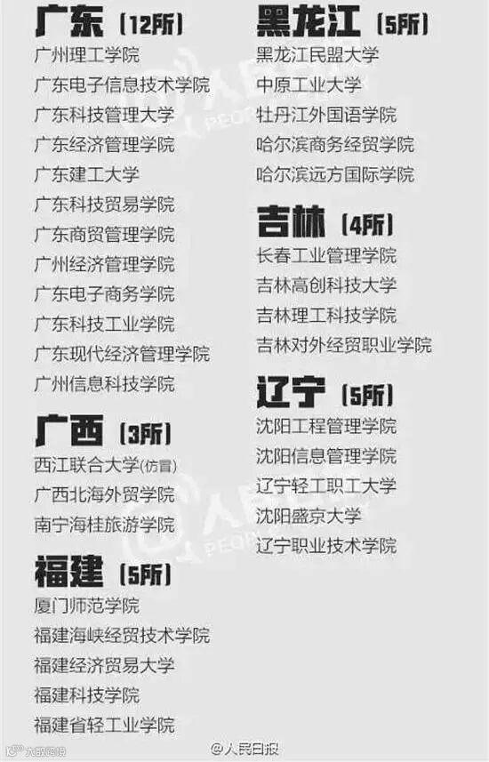 “野鸡大学”已经遍布全国各地了,考生们报志愿的时候要注意查一下学校的真伪尤其是一些报考外省院校的同学一定要看看。下边是2017年公布的野鸡大学名单各位同学参看一下。