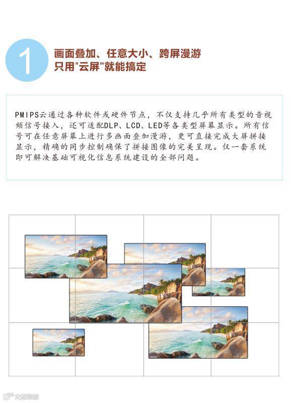 PMIPS分布式多媒体可视化综合应用平台是针对专业音视频应用的全可视化信息交互平台,主要面向政府部门、企事业单位等,为提供完备的信息可视化解决方案。旨在将用户系统内原来孤立的音视频信息全部互联为专门针对视听及信息可视化的云,实现信息的互通与共享,从而为用户提供更为直观全面的、便捷的信息获取渠道,创建集云互联、信息交互、大数据应用于一体的综合可视化信息解决放啊,使用户可以通过统一管理的大量可视化信息,更为客观的了解业务状况,做出准确的判断决策。